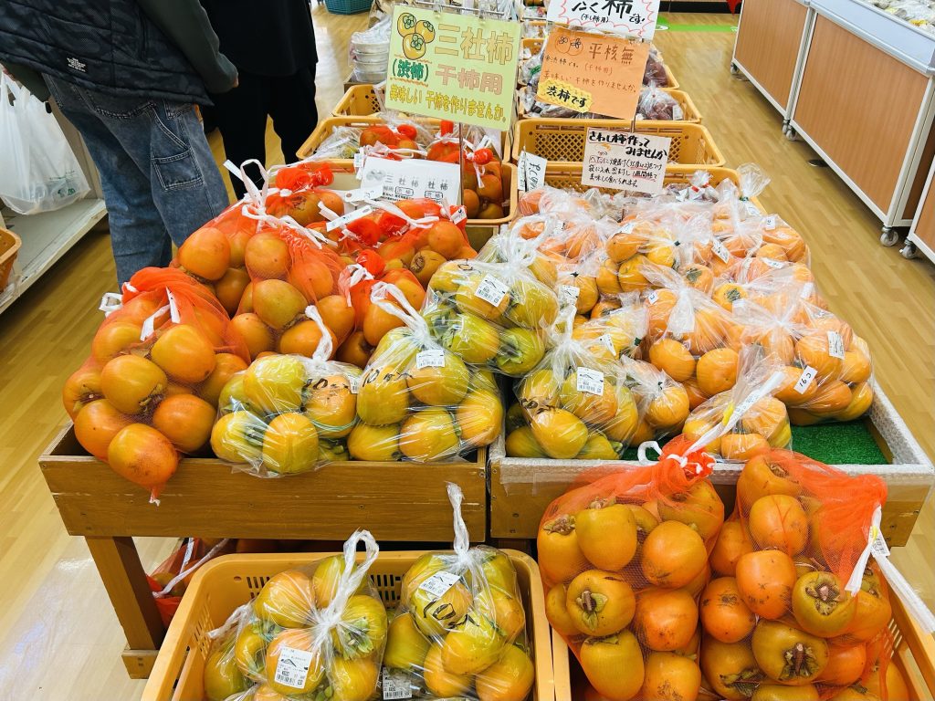 直売所に店内には、地元南砺市産の渋柿(三社柿・平種無)が豊富に並び始めました。